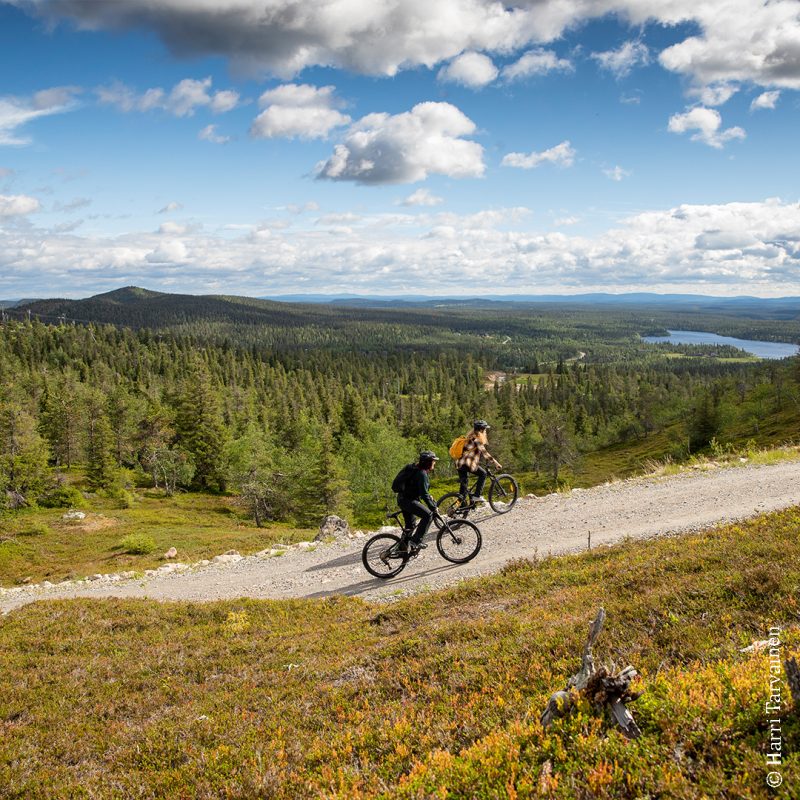 Einsame Pfade, faszinierende Naturtrails und schöne Schotterpisten– in der ganzen Region Ruka-Kuusamo gibt es 180 Kilometer an gut gepflegten Mountainbike-Strecken. Die diversen Routen eignen sich sowohl für Anfänger als auch für erfahrene Mountainbiker. Mal radelst du entspannt über weiche Waldböden, mal über nasse Wurzeln und schmale Holzstege, die über kleine Bäche und uralte Moore führen. Auf den Touren kommst du an vielen idyllisch gelegenen Holzhütten vorbei, die zum Picknicken und Grillen einladen. Der knapp 500 Meter hohe Rukatunturi-Fjell bietet außerdem einen großen Mountainbike Park.