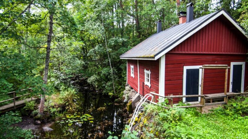 Inmitten von hügeligen Feldern, blühenden Wildwiesen und weiten Wäldern, nur eine gute Stunde von Helsinki und 15 Minuten von Lahti entfernt, liegt die idyllische Hirvi Rauchsauna von Hollola. Allein wegen der schönen Aussicht ist sie einen Besuch wert – die sanften Landschaften wirken wie aus einem Gemälde. Die traditionelle Rauchsauna wird stundenlang mit Holz beheizt, bevor sie genutzt wird, und verbreitet dabei einen aromatischen, tiefen Duft nach Harz und Holzrauch. Darüber hinaus gibt es geführte Saunarituale und entspannendes Sauna-Yoga, bei dem die Wärme der Sauna und sanfte Bewegungen zu einem meditativen Gesamterlebnis verschmelzen. Wer möchte, kann danach in einem naturbelassenen Teich abkühlen – ein klassischer Teil des finnischen Sauna-Rhythmus‘.