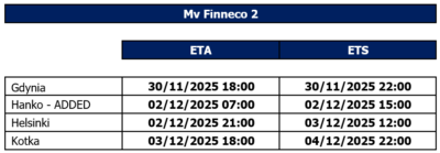 MV Finneco 2 will perform an extra call to Hanko. The updated schedule has been rearranged as follows: