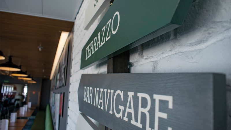 Börja din resa med ett glas mousserande vin eller en iskall drink och njut av havsutsikten på Bar Navigare. Skål för resor och avkoppling!