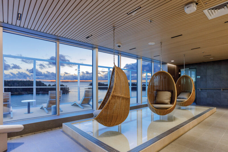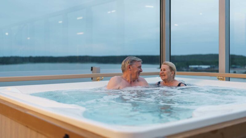 När du kliver ombord möts du av stora, öppna ytor, mjukt ljus och en känsla av att här råder ett annat tempo. Du checkar in, lämnar väskan i hytten och redan där börjar axlarna släppa taget. Och när du öppnar dörren till Höyry Spa faller resten av tempot bort. Här hittar du varma pooler, bastu och ångbastu, och en utomhusjacuzzi där havsbrisen sveper över kinderna medan fartyget glider fram genom skärgården. Det är en blandning av värme och vinterluft som inte liknar något annat.