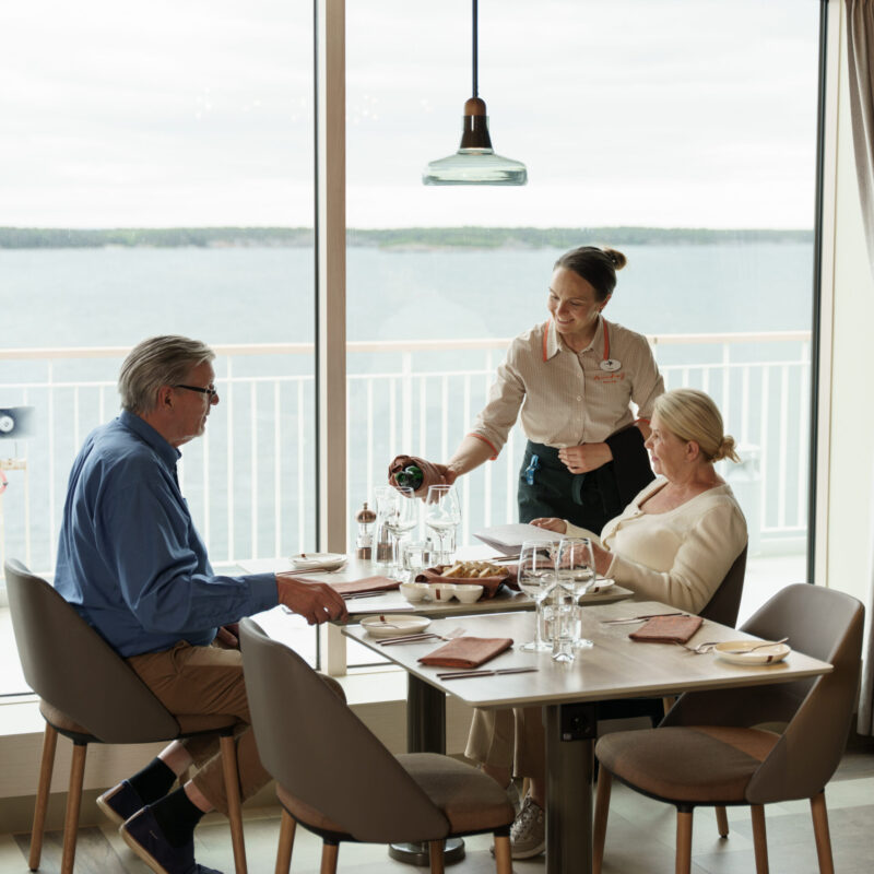 En riktig seniorkryssning med Finnlines handlar om att låta sinnena ta plats. Vi tror inte på snabbmat i farten, utan på måltider som får ta den tid de förtjänar. I restaurangen möts du av klassiska, nordiska smaker och råvaror som valts med omsorg. Att sitta kvar länge vid bordet och se horisonten förändras är för många själva definitionen av en lyckad mat- och dryckesupplevelse.